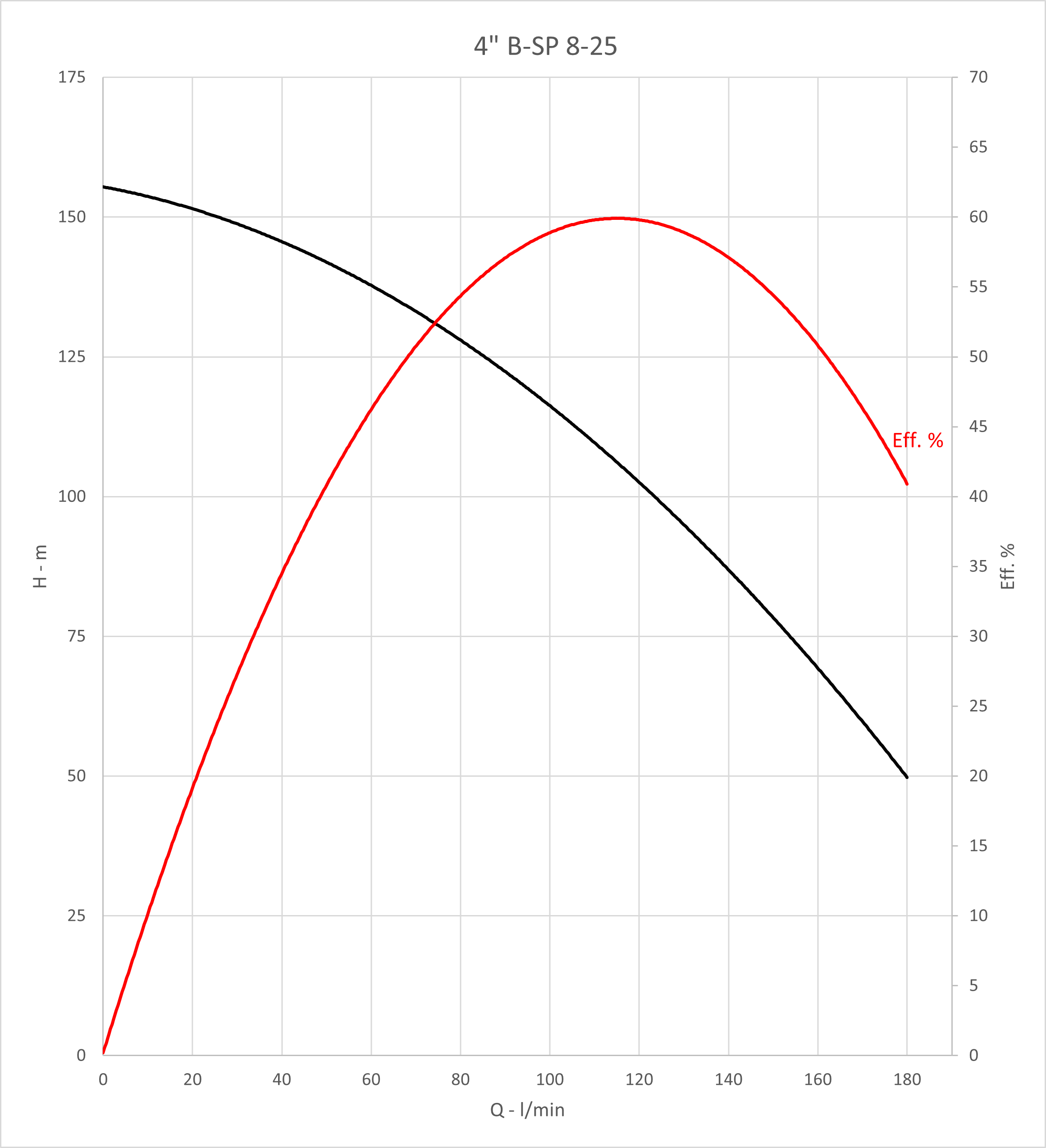 Q Max: 180 l/min Spannung: 400 V H max: 159 m P max: 4 kW Druckseitiger Anschluss Durchmesser: 2 '' Max. Temperatur des Fördermediums: 35 °C Pumpendurchmesser: 98 mm Stromaufnahme des Motors: 9,2 A Max. Eintauchtiefe Motor: 100 m Motor Typ: F.B. submersible motors |